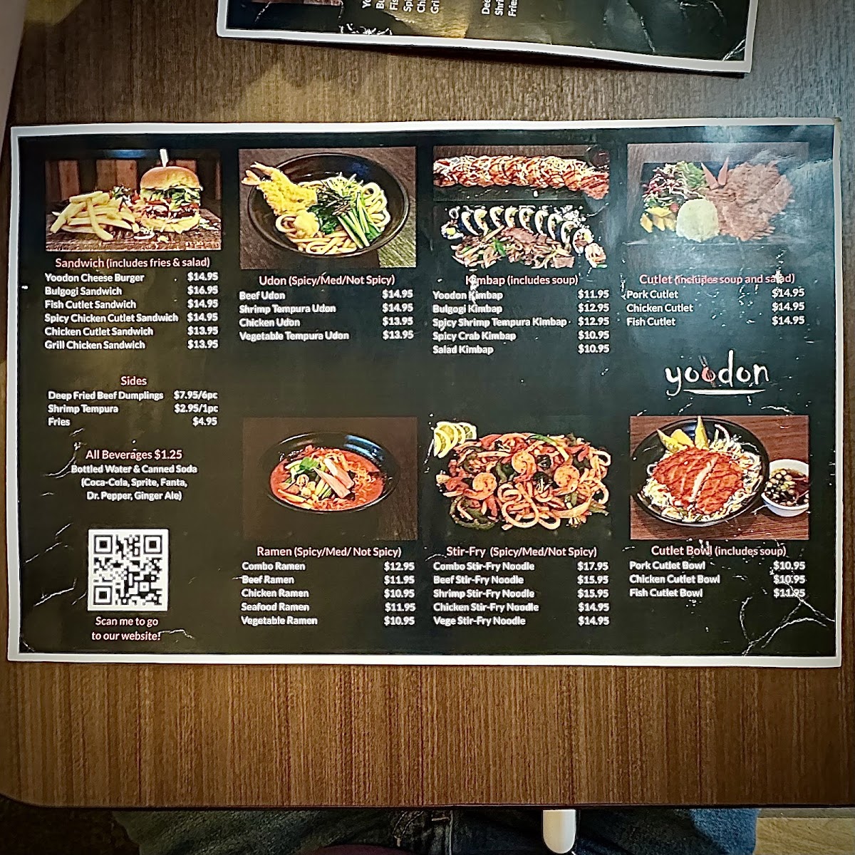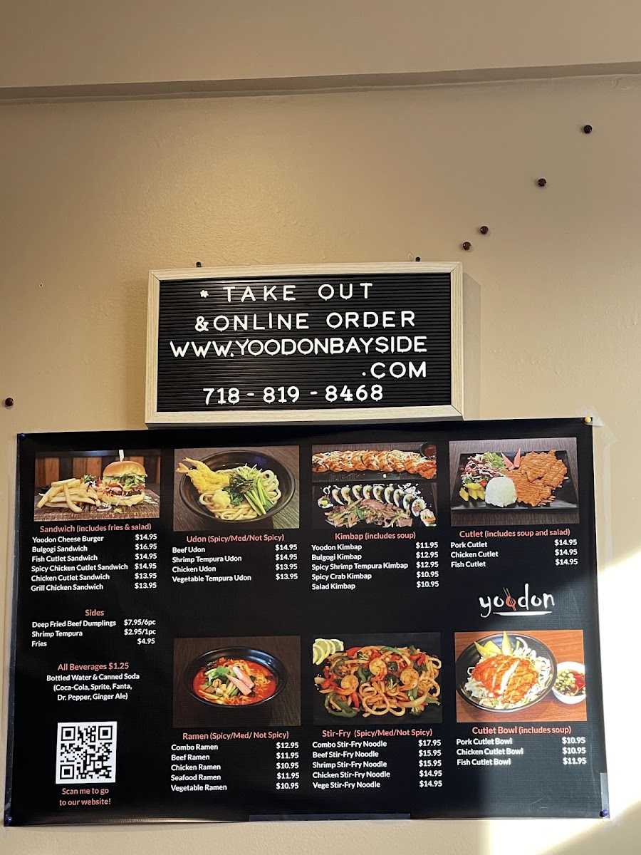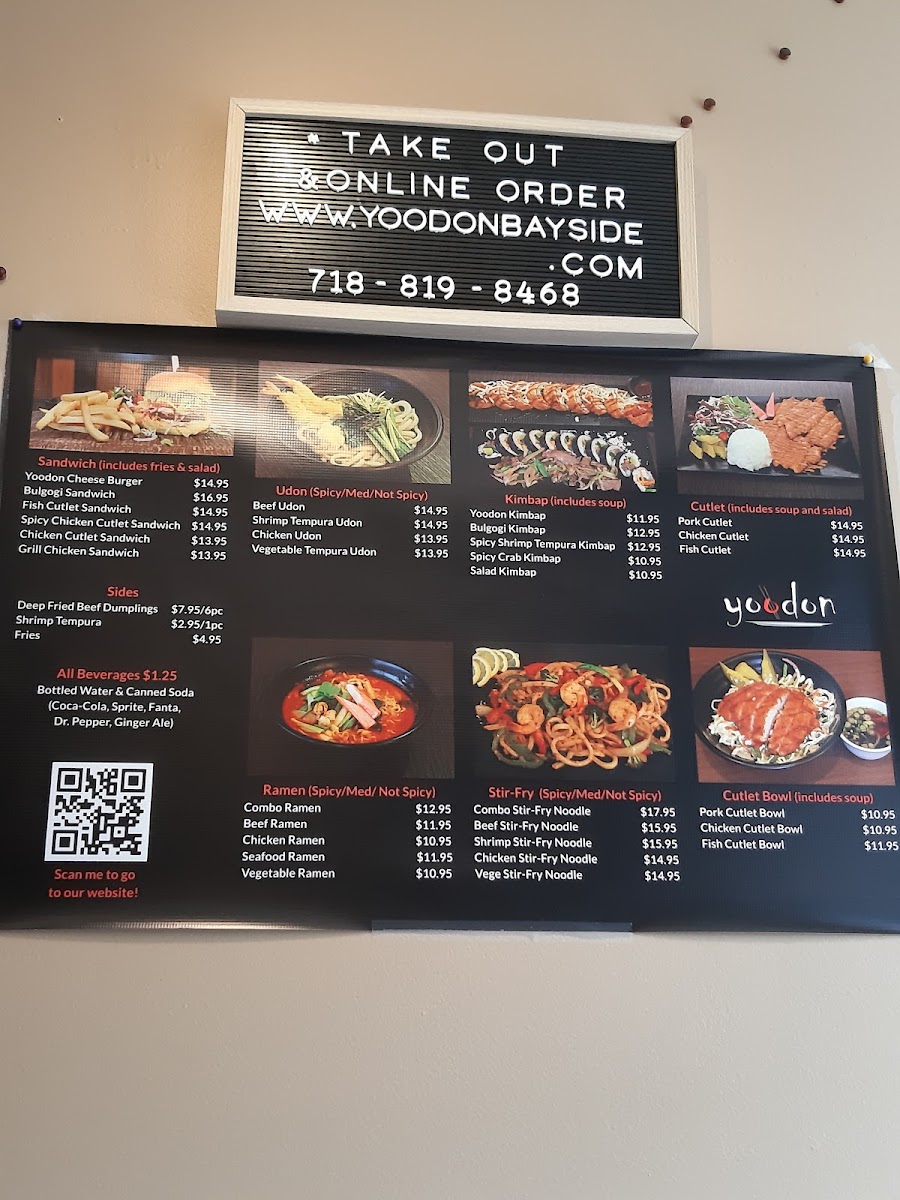 The menu also features ramen, udon, and noodle dishes, alongside other Korean classics like donkatsu and bulgogi, blending flavors that invite a moment of pause and warmth. Items like the Yoodon Cheese Burger and chicken cutlet sandwich show a casual, approachable side of the menu that appeals to both familiar tastes and those open to a bit of twist on everyday bites.